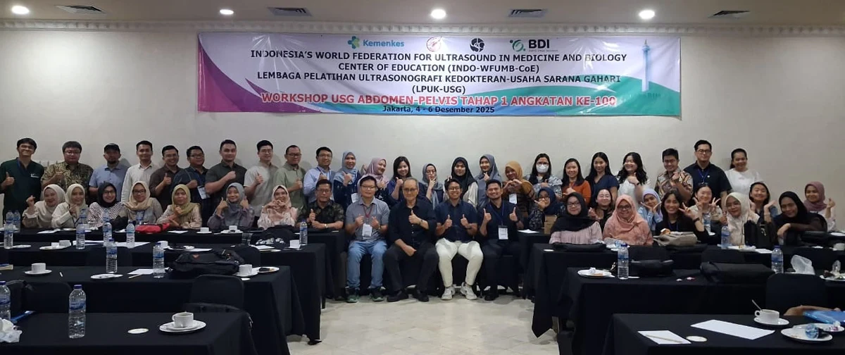 Foto bersama peserta Workshop USG Abdomen-Pelvis Tahap 1 Angkatan Ke-100 Tgl. 4 – 6 Desember 2025